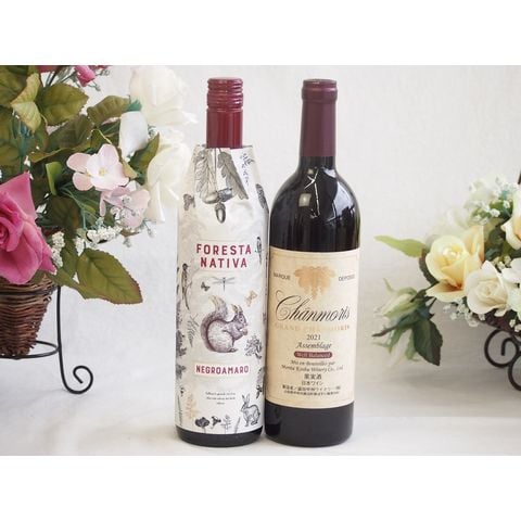 イタリア黒葡萄品種赤ワインと国産ワインセット(グランシャンモリ アッサンブラージュ 赤ワイン 重口(山梨県)750mlフィリペッティ ゴールド ブリュット (イタリア) 750ml
