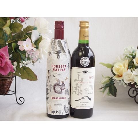 イタリア黒葡萄品種赤ワインと国産ワインセット(山梨 マスカットベーリーA 赤ワイン 重口(山梨県)750mlフィリペッティ ゴールド ブリュット (イタリア) 750ml