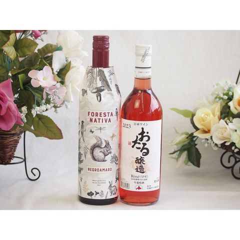 イタリア黒葡萄品種赤ワインと国産ワインセット(おたる醸造 ロゼワイン やや甘口(北海道)720mlフィリペッティ ゴールド ブリュット (イタリア) 750ml