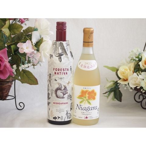 イタリア黒葡萄品種赤ワインと国産ワインセット(北海道の詩 完熟ナイヤガラ白ワイン 甘口(北海道)720mlフィリペッティ ゴールド ブリュット (イタリア) 750ml