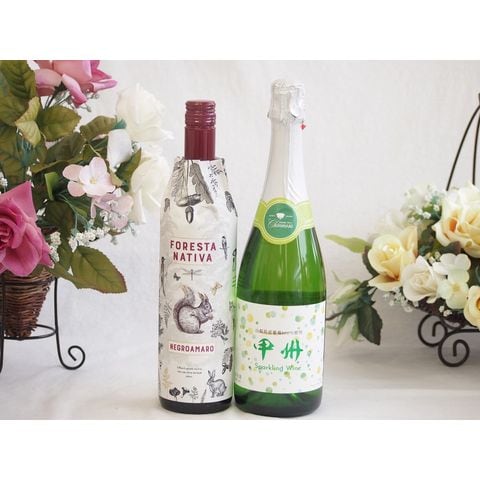 イタリア黒葡萄品種赤ワインと国産ワインセット(勝沼仕込みの甲州白スパークリングワインやや辛口(山梨県)720mlフィリペッティ ゴールド ブリュット (イタリア) 750ml