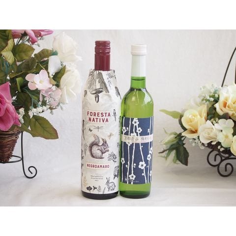 イタリア黒葡萄品種赤ワインと国産ワインセット(京都青谷 梅わいんワインやや甘口(京都府)500mlフィリペッティ ゴールド ブリュット (イタリア) 750ml
