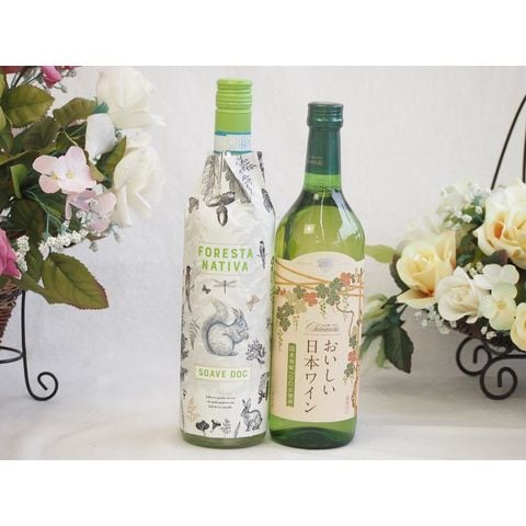 イタリアソアーヴェ白ワインと国産ワインセット(国産葡萄100%使用 おいしい日本ワイン 白ワイン やや辛口(山梨県)720mlフォレスタ ナティヴァ ソアーヴェ (イタリア) 750ml