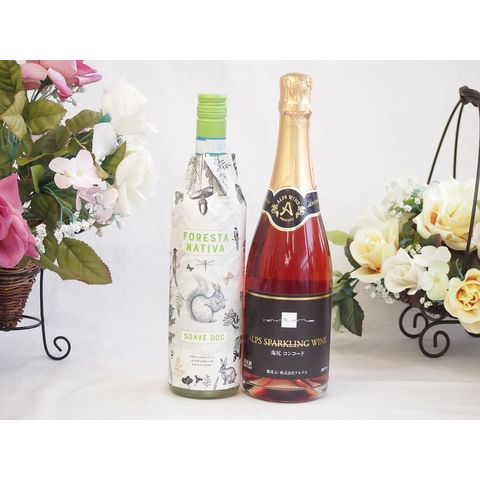 イタリアソアーヴェ白ワインと国産ワインセット(塩尻コンコードスパークリングロゼワインやや甘口(長野県)720mlフォレスタ ナティヴァ ソアーヴェ (イタリア) 750ml