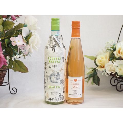 イタリアソアーヴェ白ワインと国産ワインセット(シャンモリ デラウエア オレンジワインやや甘口(山梨県)500mlフォレスタ ナティヴァ ソアーヴェ (イタリア) 750ml