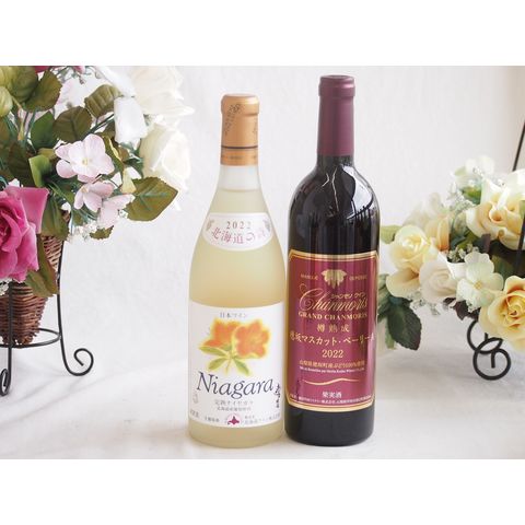 プレミアムなナイアガラワインと国産ワインセット 樽熟成穂坂マスカットベーリーA赤ワイン ミディアム(山梨県)750mlおたる完熟ナイアガラ甘口白ワイン720ml