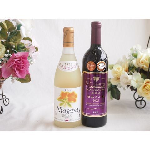 プレミアムなナイアガラワインと国産ワインセット 樽熟成松本メルロ赤ワイン フルボディ(山梨県)750mlおたる完熟ナイアガラ甘口白ワイン720ml