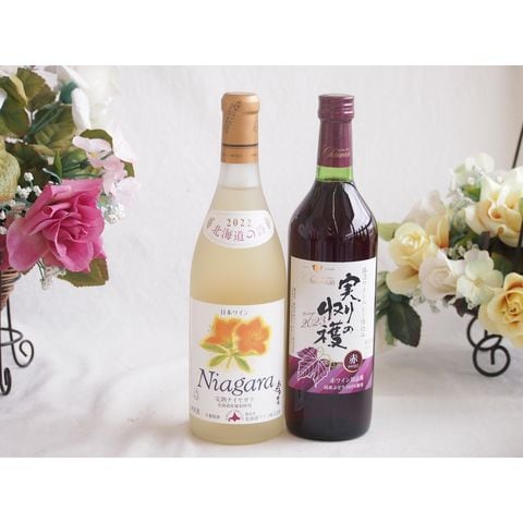 プレミアムなナイアガラワインと国産ワインセット 実りの収穫 赤ワイン やや甘口(山梨県)720mlおたる完熟ナイアガラ甘口白ワイン720ml