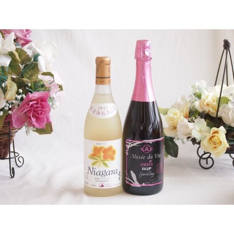 プレミアムなナイアガラワインと国産ワインセット MdV オアシス ブラッククイーンピンクロゼスパークリングワイン辛口(長野県)750mlおたる完熟ナイアガラ甘口白ワイン720ml