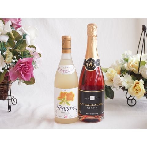 プレミアムなナイアガラワインと国産ワインセット 塩尻コンコードスパークリングロゼワインやや甘口(長野県)720mlおたる完熟ナイアガラ甘口白ワイン720ml