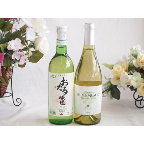 おたる生葡萄100%ナイアガラワインと国産ワイン2本セット(おたる醸造ナイアガラ白ワイン720mlシャインマスカット100白ワイン やや甘口(山梨県)750ml