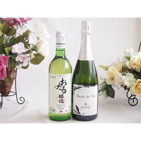 おたる生葡萄100%ナイアガラワインと国産ワイン2本セット(おたる醸造ナイアガラ白ワイン720mlMdV オアシス3 白スパークリングワイン辛口(長野県)750ml