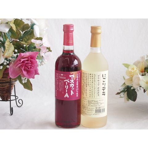 山梨県産葡萄マスカットベーリーA種使用ワインと国産ワイン2本セット(にごりデラ 白ワイン やや甘口(山梨県)720mlマスカットベーリーA赤ワイン720ml