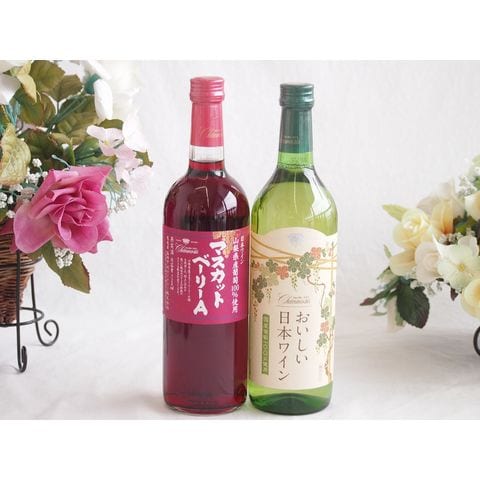 山梨県産葡萄マスカットベーリーA種使用ワインと国産ワイン2本セット(国産葡萄100%使用 おいしい日本ワイン 白ワイン やや辛口(山梨県)720mlマスカットベーリーA赤ワイン720ml