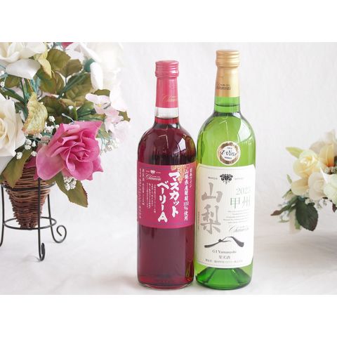 山梨県産葡萄マスカットベーリーA種使用ワインと国産ワイン2本セット(山梨 甲州 白ワイン やわらかな辛口(山梨県)750mlマスカットベーリーA赤ワイン720ml
