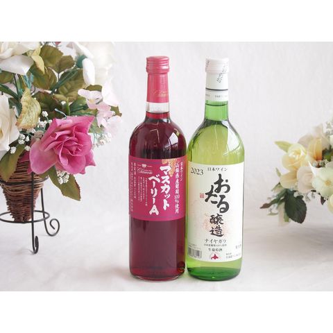 山梨県産葡萄マスカットベーリーA種使用ワインと国産ワイン2本セット(おたる醸造 ナイアガラ 白ワイン やや甘口(北海道)720mlマスカットベーリーA赤ワイン720ml