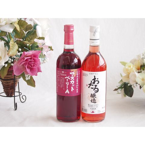 山梨県産葡萄マスカットベーリーA種使用ワインと国産ワイン2本セット(おたる醸造 ロゼワイン やや甘口(北海道)720mlマスカットベーリーA赤ワイン720ml