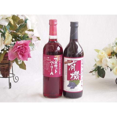 山梨県産葡萄マスカットベーリーA種使用ワインと国産ワイン2本セット(酸化防止剤無添加 有機あずさ赤ワイン 中口(長野県)720mlマスカットベーリーA赤ワイン720ml