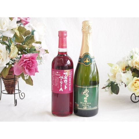 山梨県産葡萄マスカットベーリーA種使用ワインと国産ワイン2本セット(おたる醸造 ナイアガラス白パークリングワインやや甘口(北海道)720mlマスカットベーリーA赤ワイン720ml
