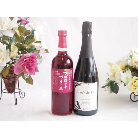 山梨県産葡萄マスカットベーリーA種使用ワインと国産ワイン2本セット(MdV オアシス ブラッククイーン白スパークリングワイン辛口(長野県)750mlマスカットベーリーA赤ワイン720ml