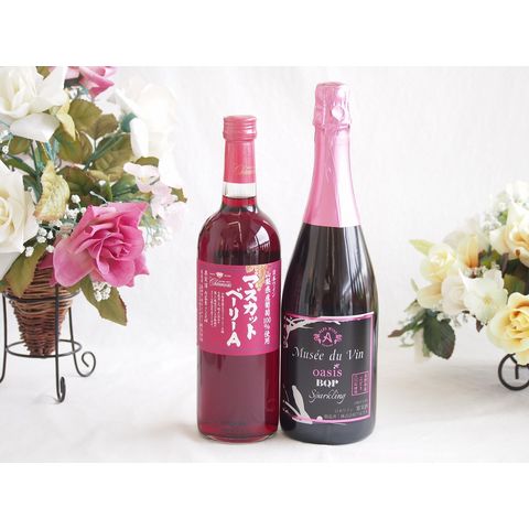 山梨県産葡萄マスカットベーリーA種使用ワインと国産ワイン2本セット(MdV オアシス ブラッククイーンピンクロゼスパークリングワイン辛口(長野県)750mlマスカットベーリーA赤ワイン720ml