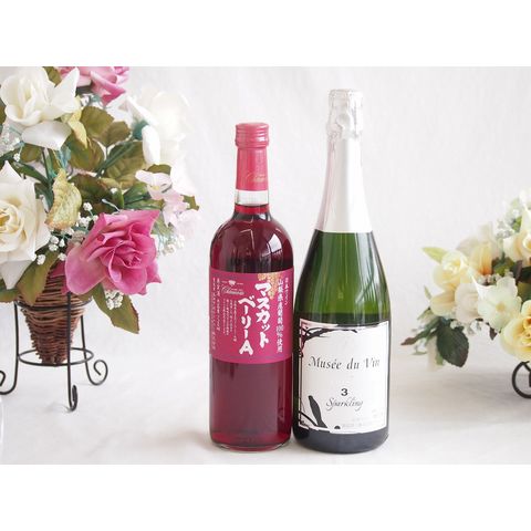 山梨県産葡萄マスカットベーリーA種使用ワインと国産ワイン2本セット(MdV オアシス3 白スパークリングワイン辛口(長野県)750mlマスカットベーリーA赤ワイン720ml