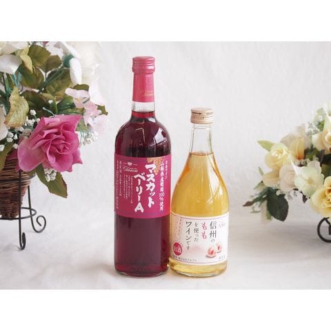 山梨県産葡萄マスカットベーリーA種使用ワインと国産ワイン2本セット(信州のももを使ったワインです甘口(長野県)500mlマスカットベーリーA赤ワイン720ml