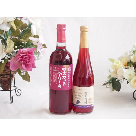 山梨県産葡萄マスカットベーリーA種使用ワインと国産ワイン2本セット(信州巨峰スパークリングワイン やや甘口(長野県)500mlマスカットベーリーA赤ワイン720ml