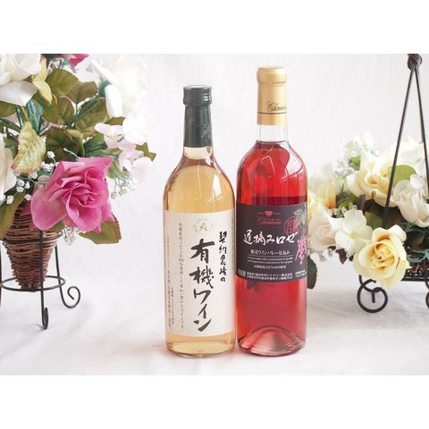 有機栽培100%白ワインと国産ワインセット(遅摘みロゼ 完熟甘口ワイン 甘口(山梨県)720ml契約農場の有機白ワイン720ml