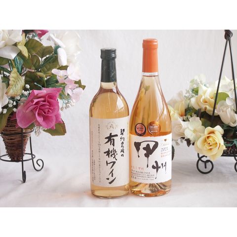 有機栽培100%白ワインと国産ワインセット(かもし甲州 オレンジワイン 辛口(山梨県)720ml契約農場の有機白ワイン720ml