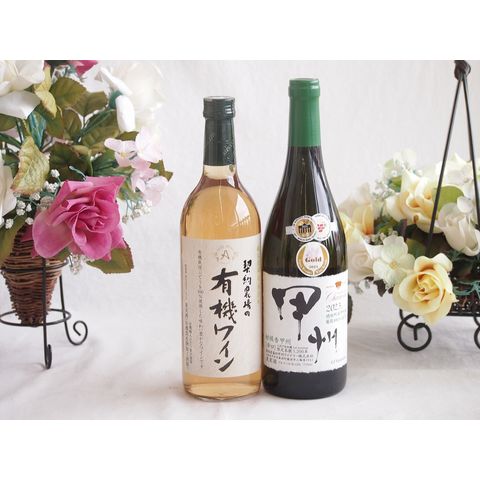 有機栽培100%白ワインと国産ワインセット(柑橘香 穂坂甲州 白ワイン 辛口(山梨県)720ml契約農場の有機白ワイン720ml