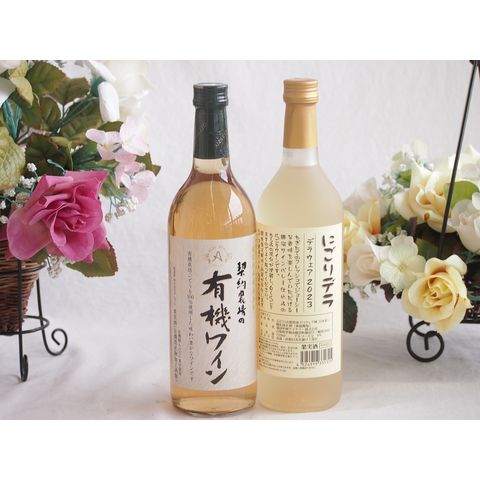 有機栽培100%白ワインと国産ワインセット(にごりデラ 白ワイン やや甘口(山梨県)720ml契約農場の有機白ワイン720ml