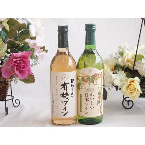 有機栽培100%白ワインと国産ワインセット(国産葡萄100%使用 おいしい日本ワイン 白ワイン やや辛口(山梨県)720ml契約農場の有機白ワイン720ml