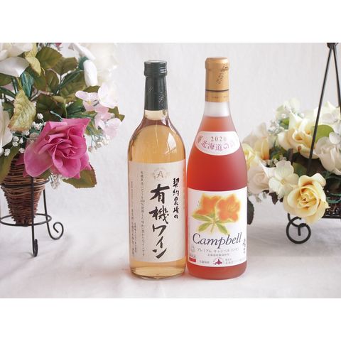 有機栽培100%白ワインと国産ワインセット(北海道の詩 プレミアムキャンベルロゼワイン 甘口(北海道)720ml契約農場の有機白ワイン720ml