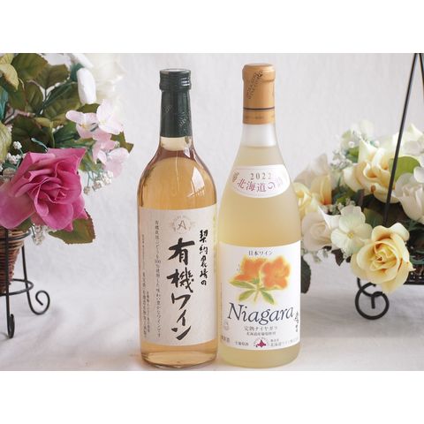 有機栽培100%白ワインと国産ワインセット(北海道の詩 完熟ナイヤガラ白ワイン 甘口(北海道)720ml契約農場の有機白ワイン720ml