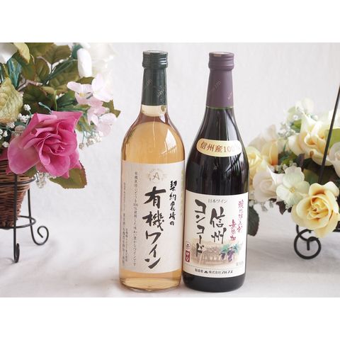 有機栽培100%白ワインと国産ワインセット(酸化防止剤無添加 信州コンコード赤ワイン 中口(長野県)720ml契約農場の有機白ワイン720ml
