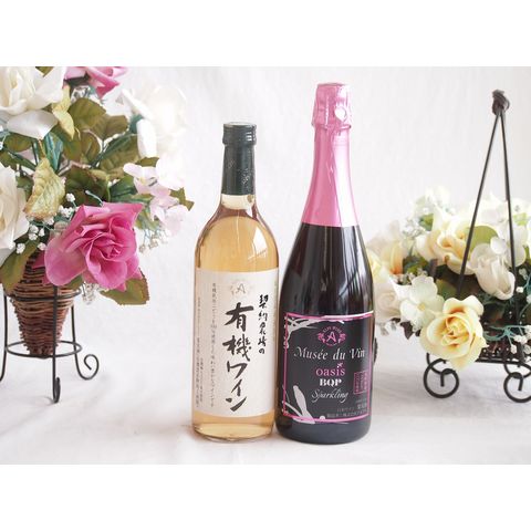 有機栽培100%白ワインと国産ワインセット(MdV オアシス ブラッククイーンピンクロゼスパークリングワイン辛口(長野県)750ml契約農場の有機白ワイン720ml