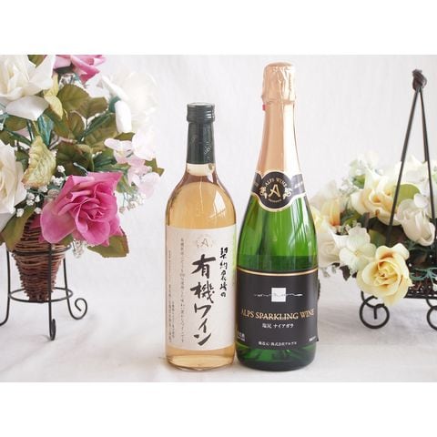 有機栽培100%白ワインと国産ワインセット(塩尻ナイアガラスパークリング白ワインやや甘口(長野県)720ml契約農場の有機白ワイン720ml