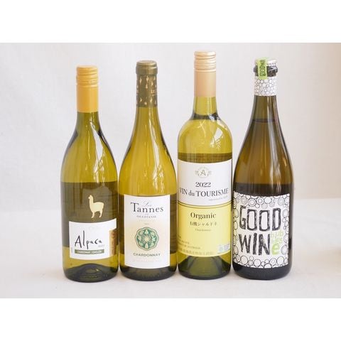 産地別白ワインシャルドネ4本セット(サンタ ヘレナ アルパカ(チリ) ヴァン ドゥ ツーリズム有機(スペイン) レ タンヌ オクシタン(フランス) グッドワイン スパークリング(オーストラリア)) 750ml×4本
