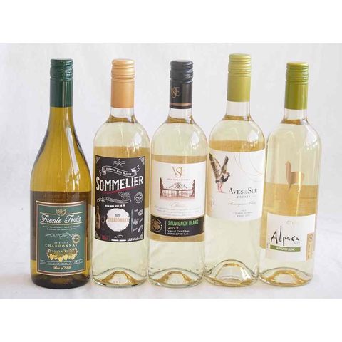 爽やかな酸味のチリ辛口白ワイン 5本セット(フルロッティ ソムリエ シャルドネ クラシック ソーヴィニヨン ブラン デル スール ソーヴィニヨン ブラン アルパカ ソーヴィニヨン ブラン フエンテ フルータ シャルドネ) 750ml×5本