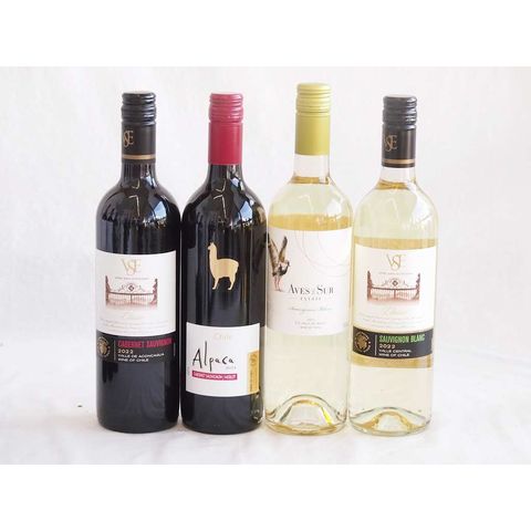 人々に愛されチリ赤白ワイン 4本セット(クラシックソーヴィニヨン・ブラン白 クラシックカベルネ・ソーヴィニヨン赤 デル スール ソーヴィニヨン・ブラン白 アルパカ カベルネ・メルロー赤) 750ml×4本