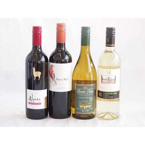 人々に愛されチリ赤白ワイン 4本セット(クラシックソーヴィニヨン・ブラン白 デル・スール カルメネール赤 アルパカ カベルネ・メルロー赤 フエンテ フルータ シャルドネ白) 750ml×4本
