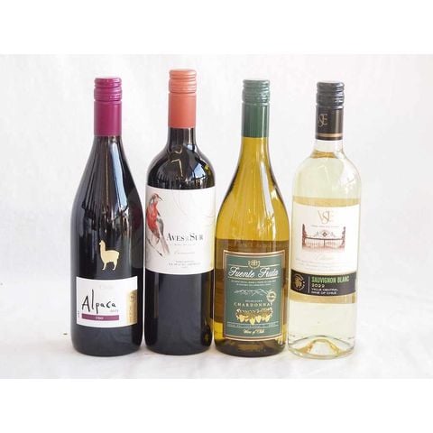 人々に愛されチリ赤白ワイン 4本セット(クラシックソーヴィニヨン・ブラン白 デル・スール カルメネール赤 アルパカ シラー赤 フエンテ フルータ シャルドネ白) 750ml×4本