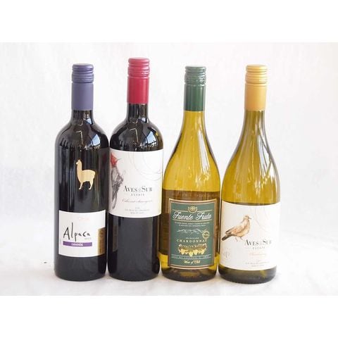 人々に愛されチリ赤白ワイン 4本セット(デル スール カベルネ ソーヴィニヨン赤 デル・スール シャルドネ白 アルパカ カルメネール赤 フエンテ フルータ シャルドネ白) 750ml×4本