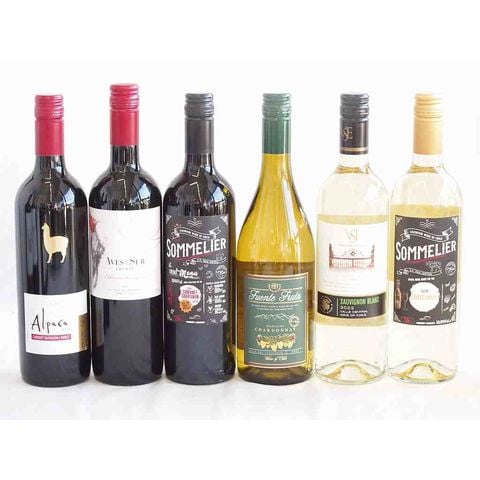 人々に愛されチリ赤白ワイン 6本セット(ソムリエ カベルネ ソーヴィニヨン赤 フルロッティ ソムリエ シャルドネ白 クラシックソーヴィニヨン・ブラン白 デル スール カベルネ ソーヴィニヨン赤 アルパカ カベルネ・メルロー赤 フエンテ フルータ シャルド