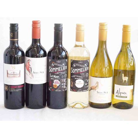 人々に愛されチリ赤白ワイン 6本セット(ソムリエ カベルネ ソーヴィニヨン赤 フルロッティ ソムリエ シャルドネ白 クラシックカベルネ・ソーヴィニヨン赤 デル・スール シャルドネ白 デル・スール カルメネール赤 アルパカ シャルドネ セミヨン白) 750