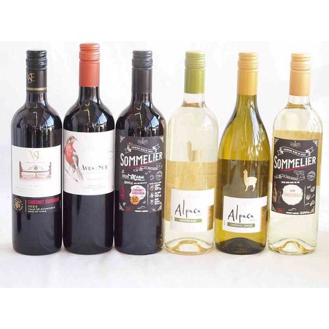 人々に愛されチリ赤白ワイン 6本セット(ソムリエ カベルネ ソーヴィニヨン赤 フルロッティ ソムリエ シャルドネ白 クラシックカベルネ・ソーヴィニヨン赤 デル・スール カルメネール赤 アルパカ ソーヴィニヨン ブラン白 アルパカ シャルドネ セミヨン白)