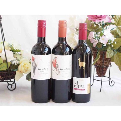 しっかりした存在感チリ赤ワイン 3本セット(デル スール カベルネ ソーヴィニヨン デル・スール カルメネール アルパカ カベルネ・メルロー) 750ml×3本