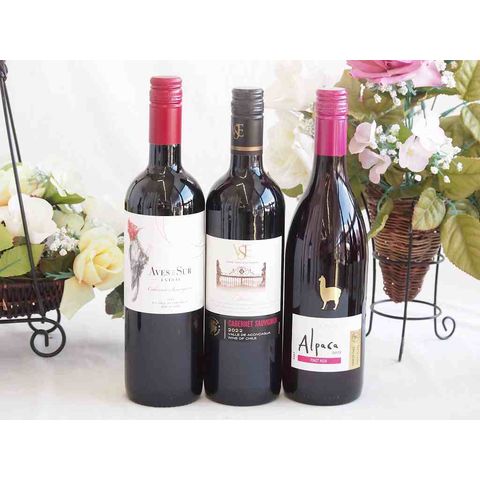 しっかりした存在感チリ赤ワイン 3本セット(クラシック カベルネ・ソーヴィニヨン デル スール カベルネ ソーヴィニヨン アルパカ ピノ ノワール) 750ml×3本