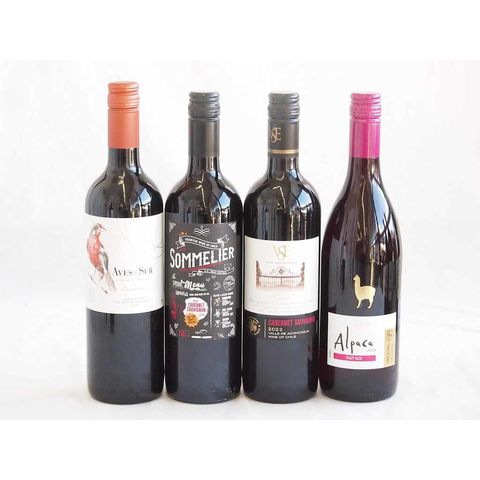 しっかりした存在感チリ赤ワイン 4本セット(クレマスキ ソムリエ カベルネ ソーヴィニヨン クラシック カベルネ・ソーヴィニヨン デル・スール カルメネール アルパカ ピノ ノワール) 750ml×4本